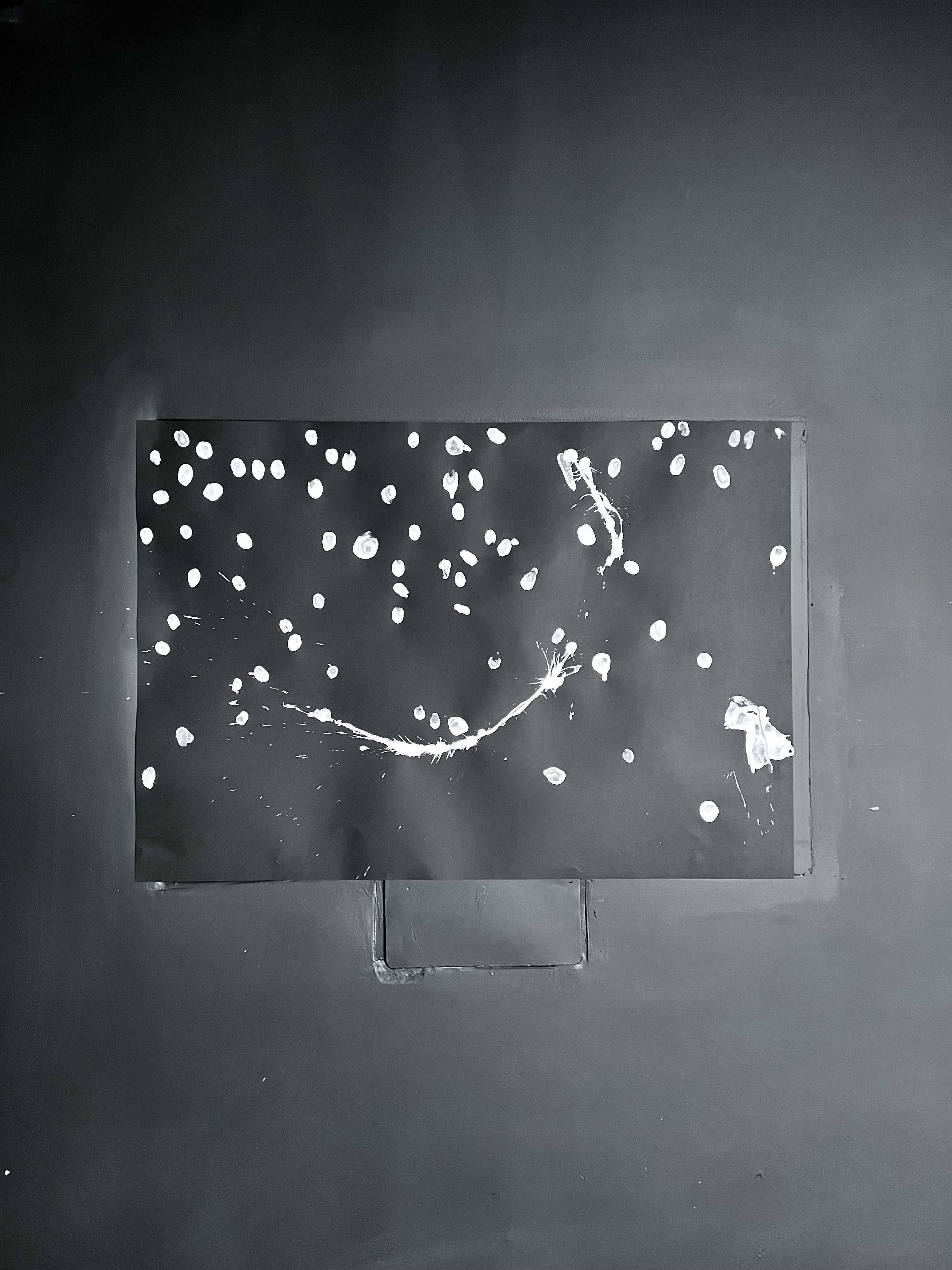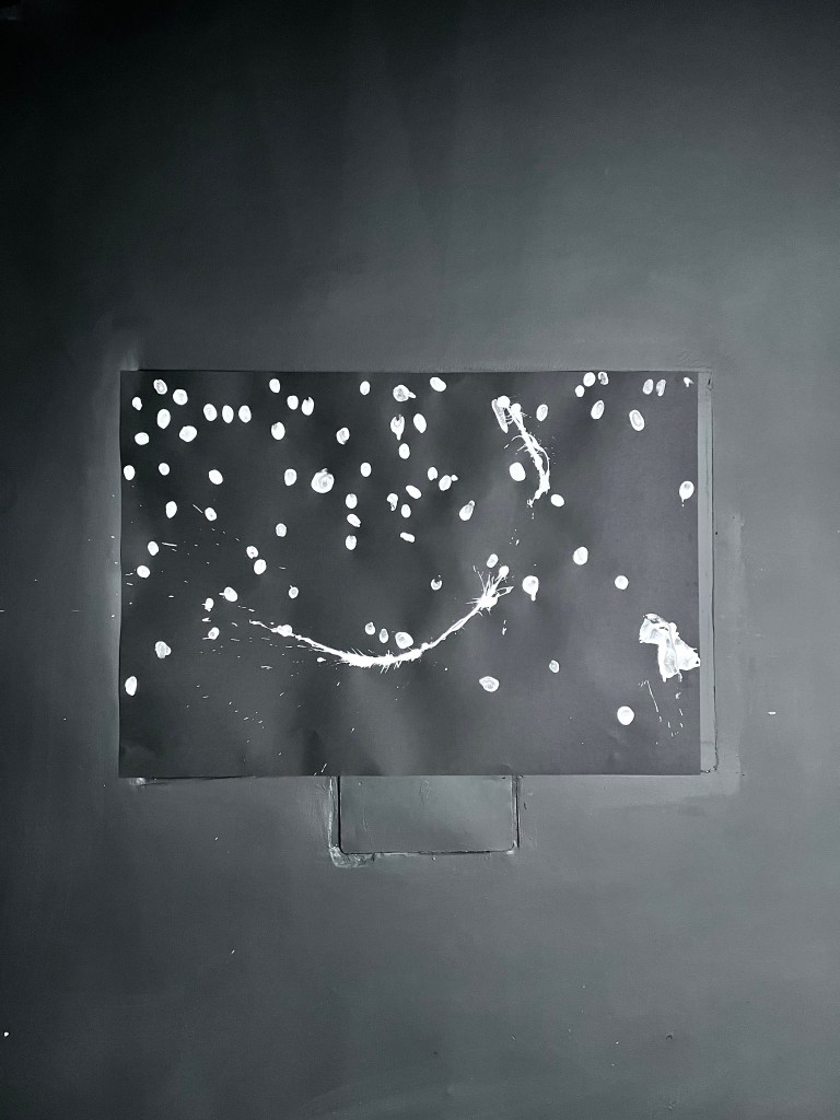 Action: Both you and Ilze dip your fingers in the white paint and touch each other. Do this by feeling how and where!