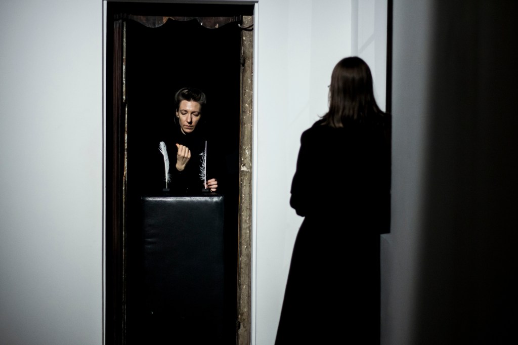 The performance took place on the border between the darkness of the closet and the illuminated hall bridging the aesthetics of Renaissance painting and the modern world – an ideal point to reflect on time and man’s efforts to keep or change it.